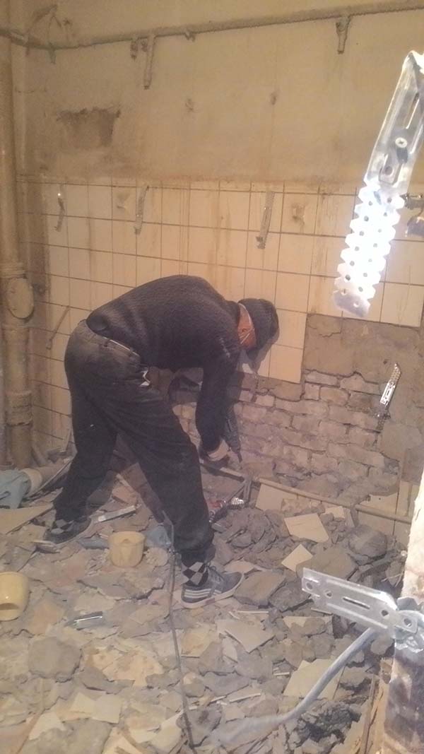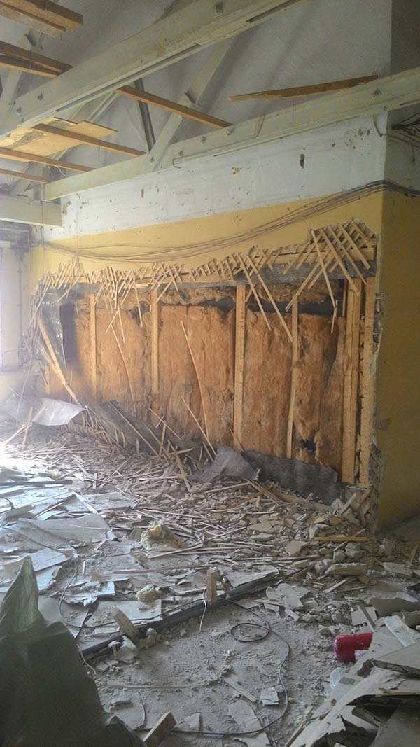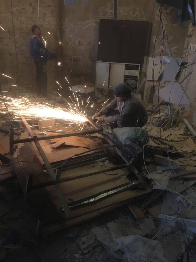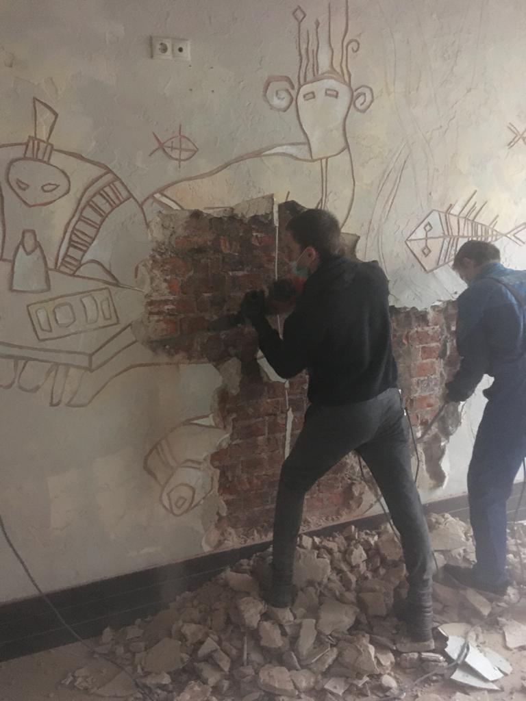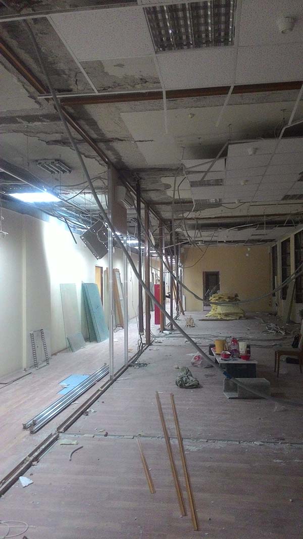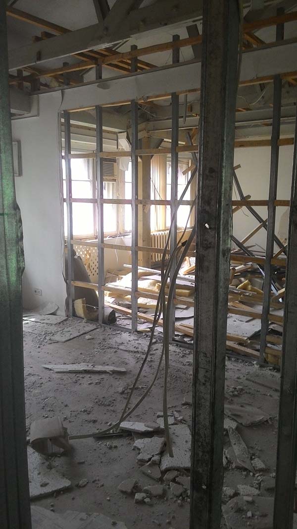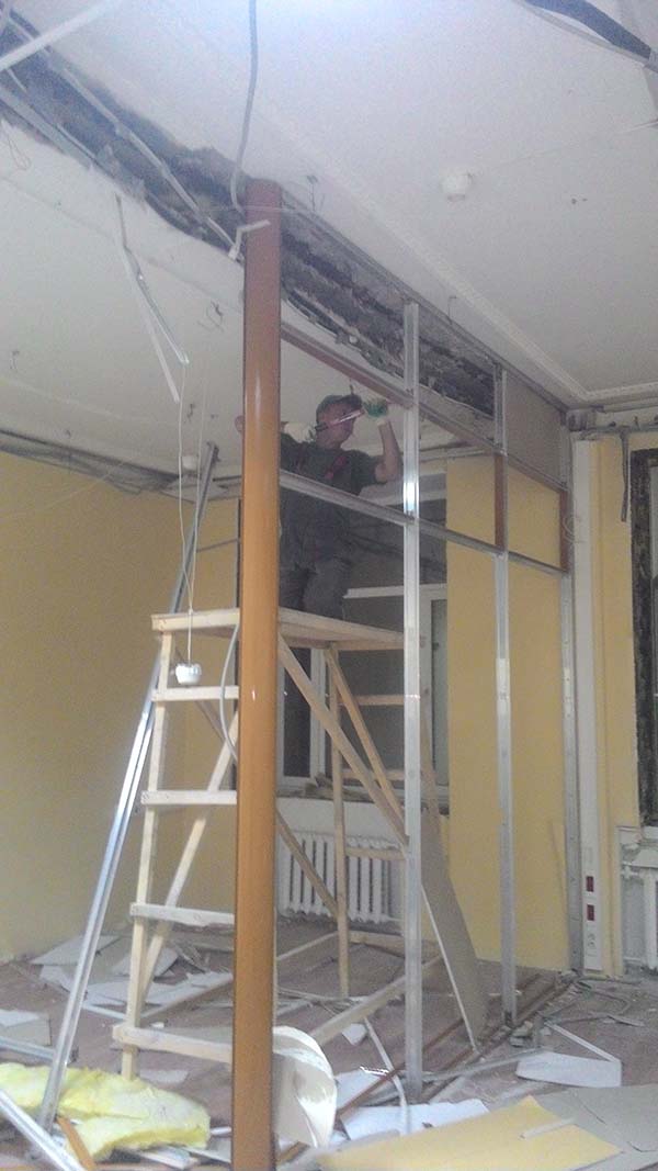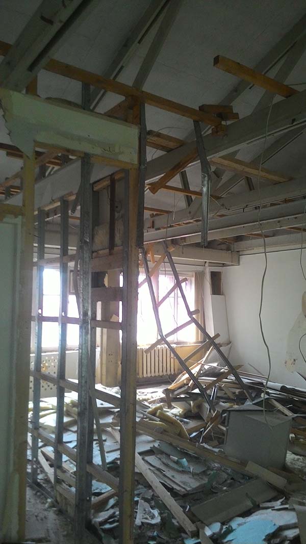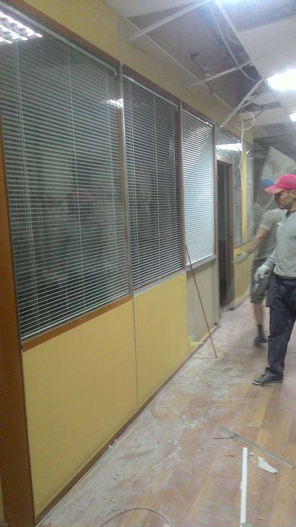 Частичный демонтаж в офисе 95 м² (Щипок). За 4 дня разобрали ГКЛ-перегородки, сняли потолок «Армстронг», очистили стены от штукатурки, демонтировали сантехнику/электрику/сигнализацию. Мусор упаковали, вручную спустили с 4 этажа и вывезли 2 контейнерами по 27 м³.