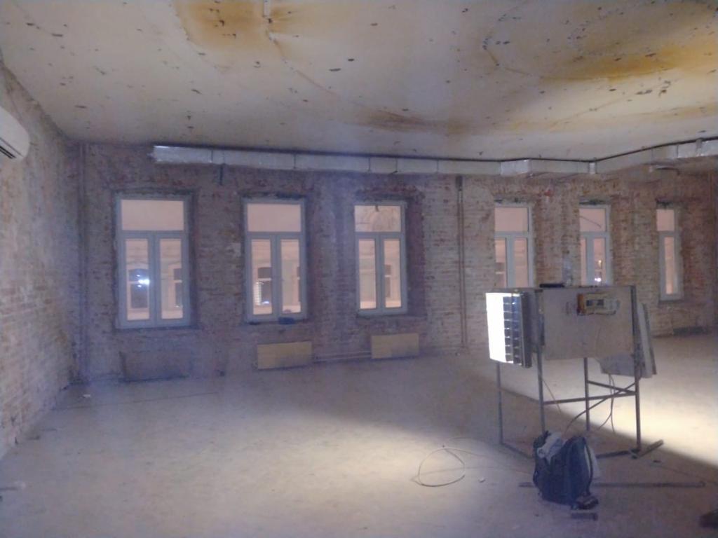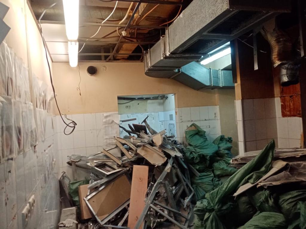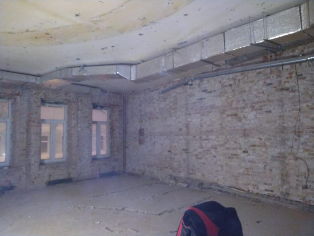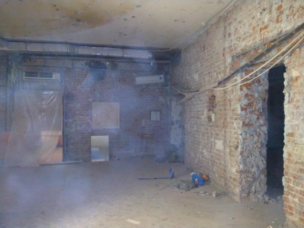 Демонтаж офиса 853 м² в Уланском переулке за 24 дня. Разобрали стеклянные и ГКЛ-перегородки, сняли потолок «армстронг», демонтировали штукатурку и стяжку, частично разобрали инженерные сети (сантехника/электрика/сигнализация). Мусор упаковали, вручную спустили с 4 этажа и вывезли 35 контейнерами по 8 м³. Офис полностью подготовлен к следующему этапу ремонта.