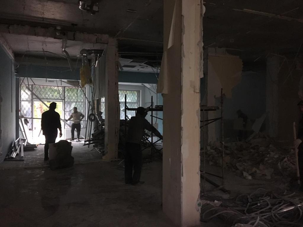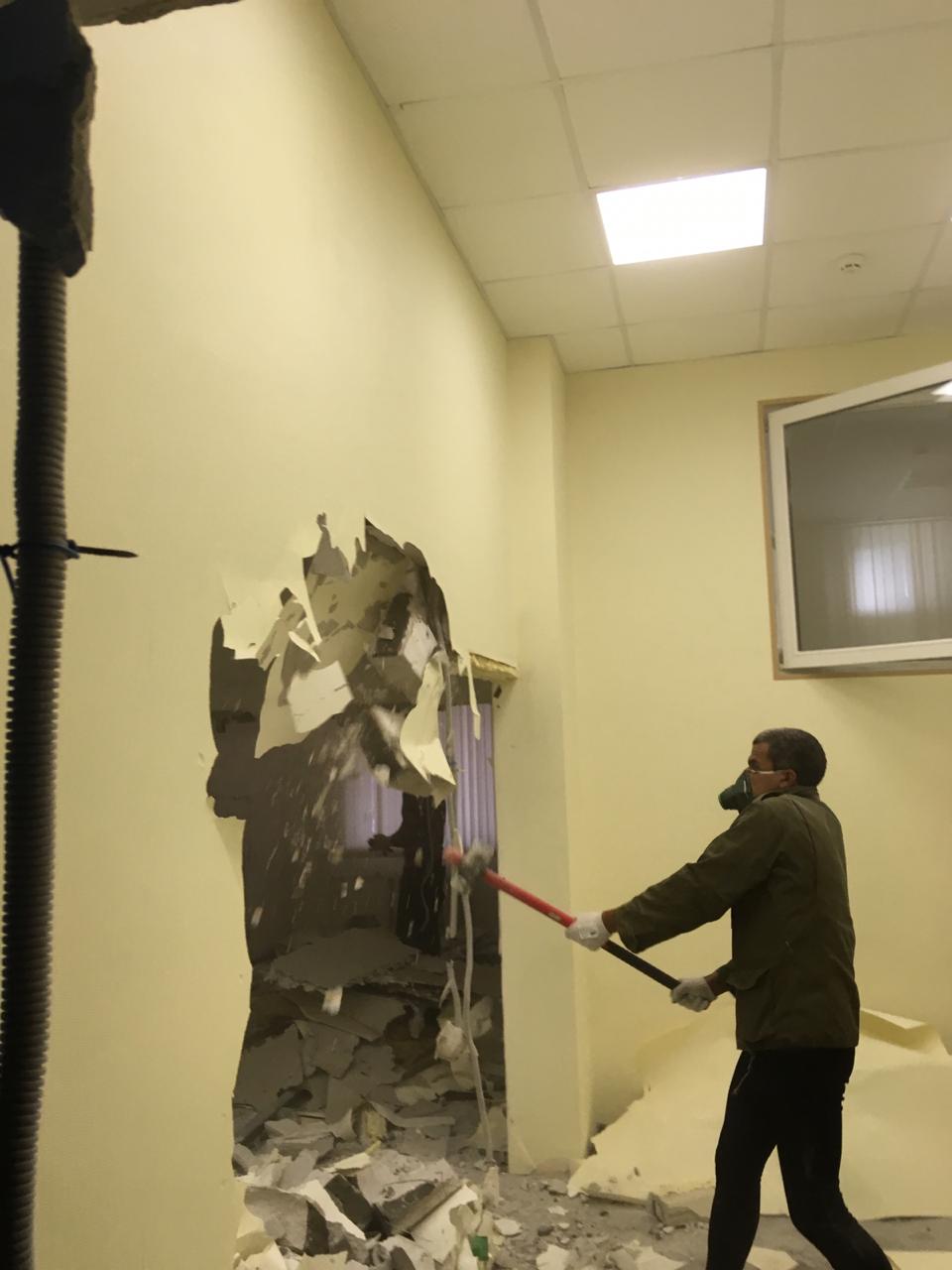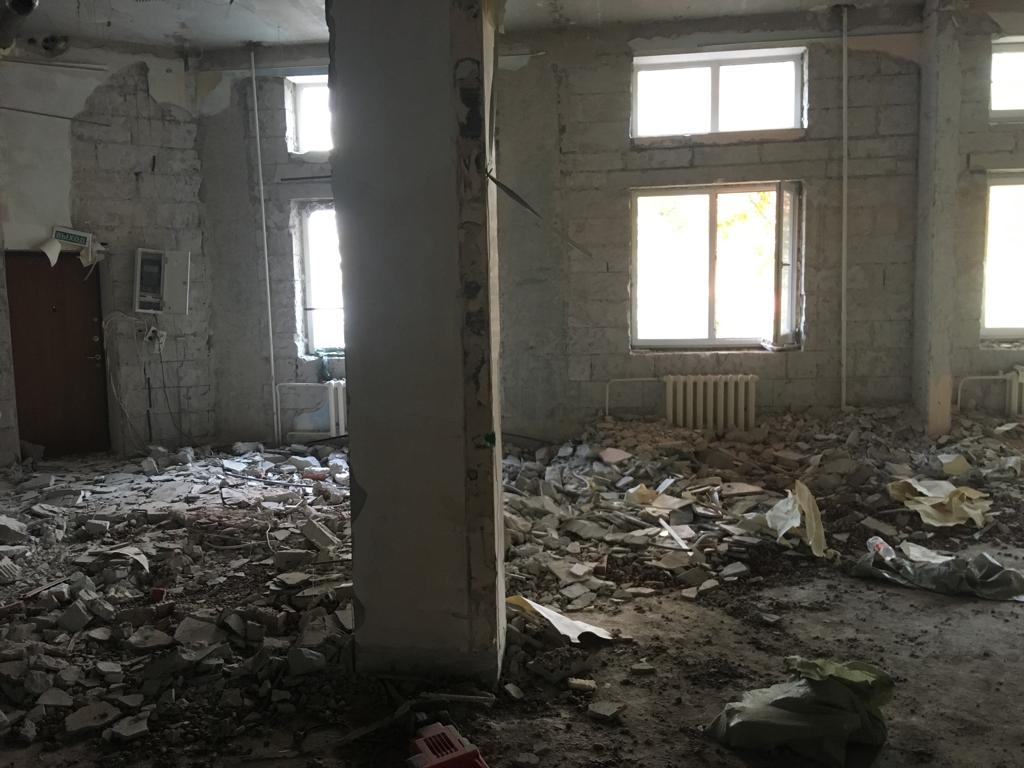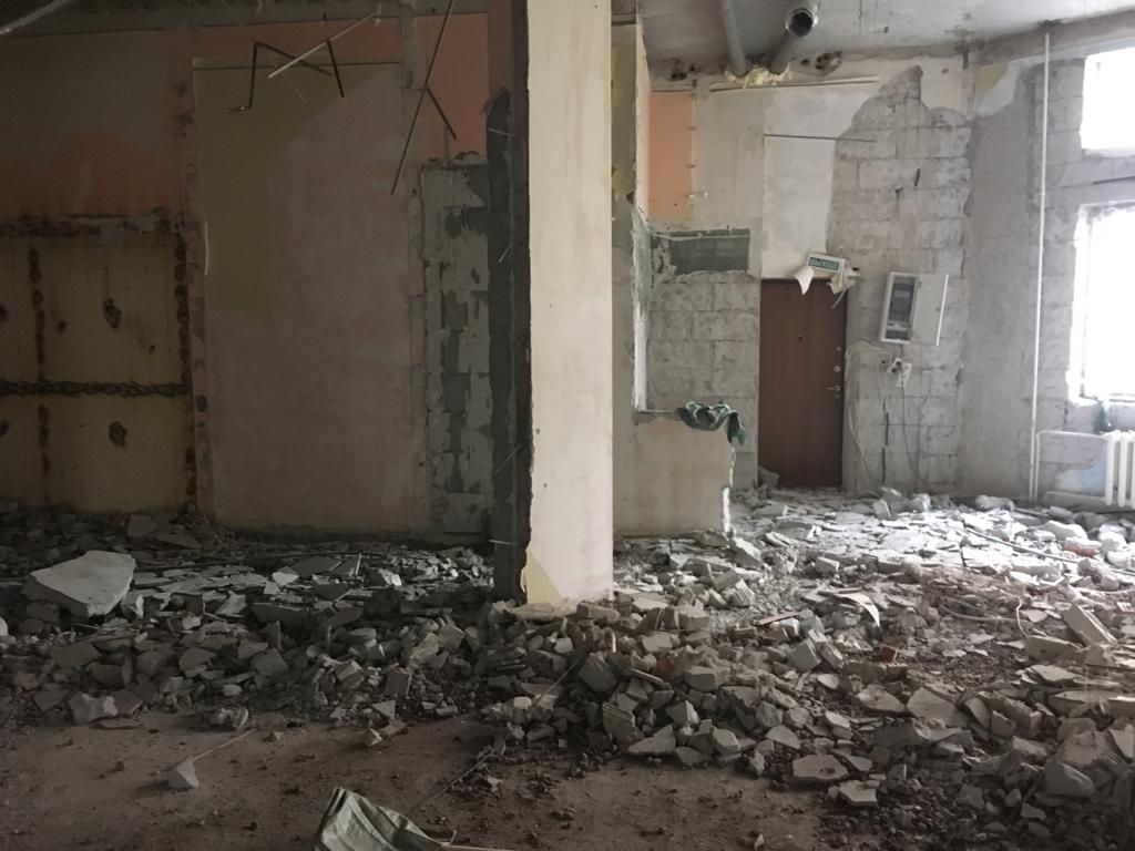 Демонтаж офиса 853 м² в Уланском переулке за 24 дня. Разобрали стеклянные и ГКЛ-перегородки, сняли потолок «армстронг», демонтировали штукатурку и стяжку, частично разобрали инженерные сети (сантехника/электрика/сигнализация). Мусор упаковали, вручную спустили с 4 этажа и вывезли 35 контейнерами по 8 м³. Офис полностью подготовлен к следующему этапу ремонта.
