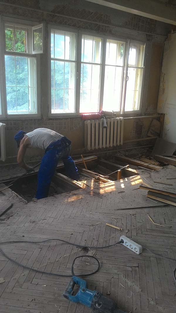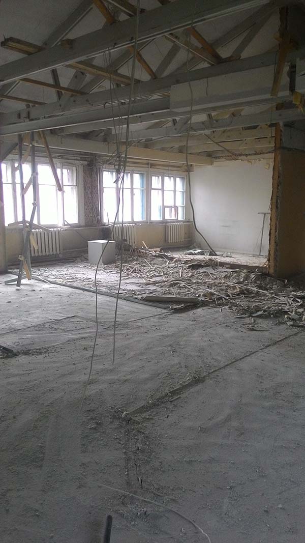 Демонтаж офиса 120 м². За 12 дней выполнили поэтапный демонтаж отделки и конструкций, организовали упаковку и вынос, вывезли 15 контейнеров по 8 м³. Помещение очищено и подготовлено под дальнейшие ремонтные работы.