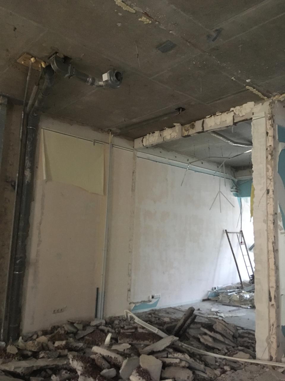 Офис 135 м², Шоссе Энтузиастов. Полный демонтаж за 12 дней: перегородки, армстронг, штукатурка, стяжка, коммуникации + вывоз мусора 3 контейнера по 27 м³.